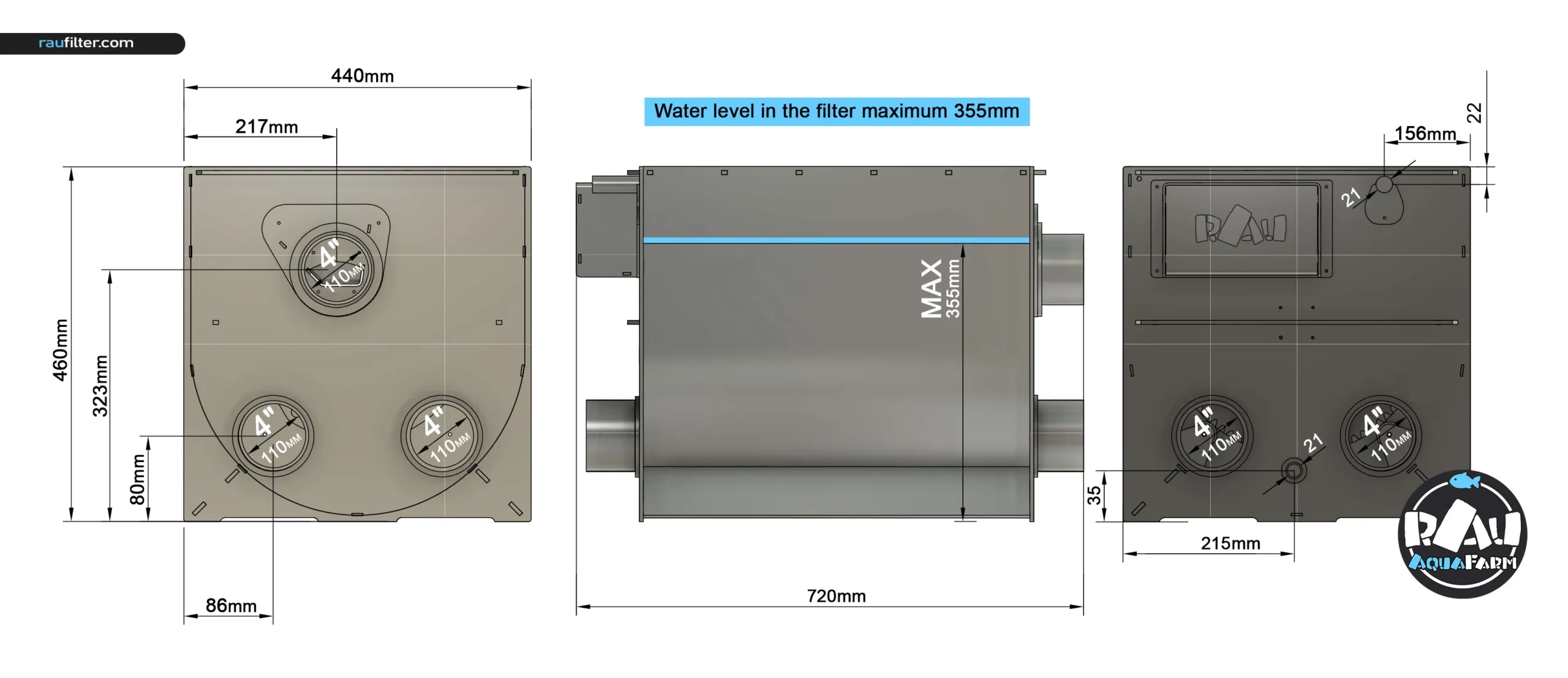 Filter dimensions (L x W x H): 720mm x 440mm x 460mm MillimetersFilter dimensions (L x W x H): 28.35″ × 17.32″ × 18.11″ Inches
